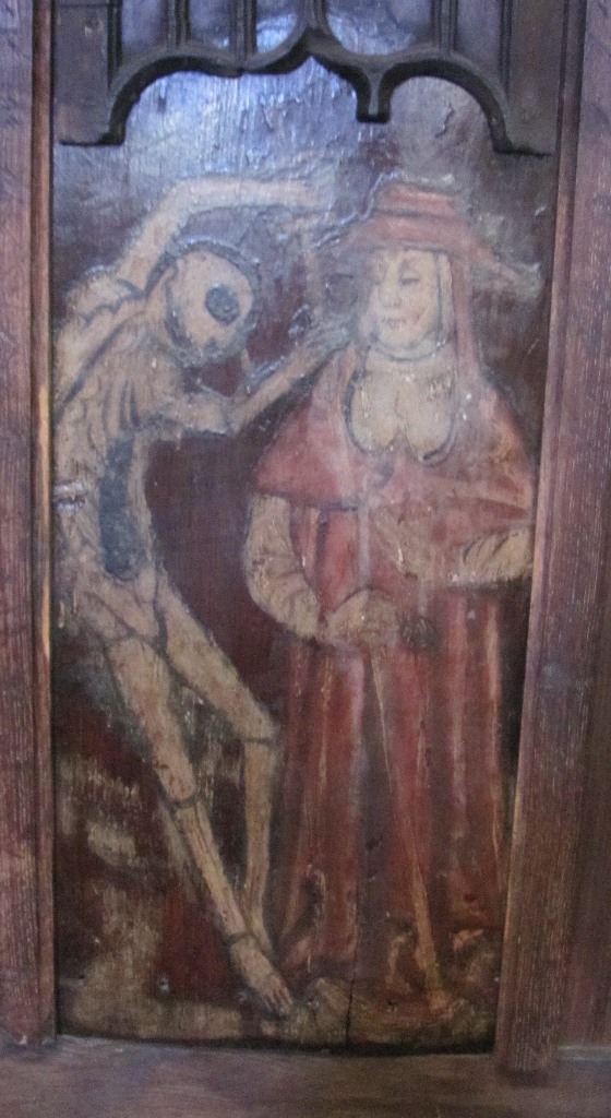 .... and his son. You'll see he holds a copy of the church (in the same way as saints connected to other churches and cathedral hold the church). It is because in 1875, under his care, a great deal of restoration was conducted on the church.